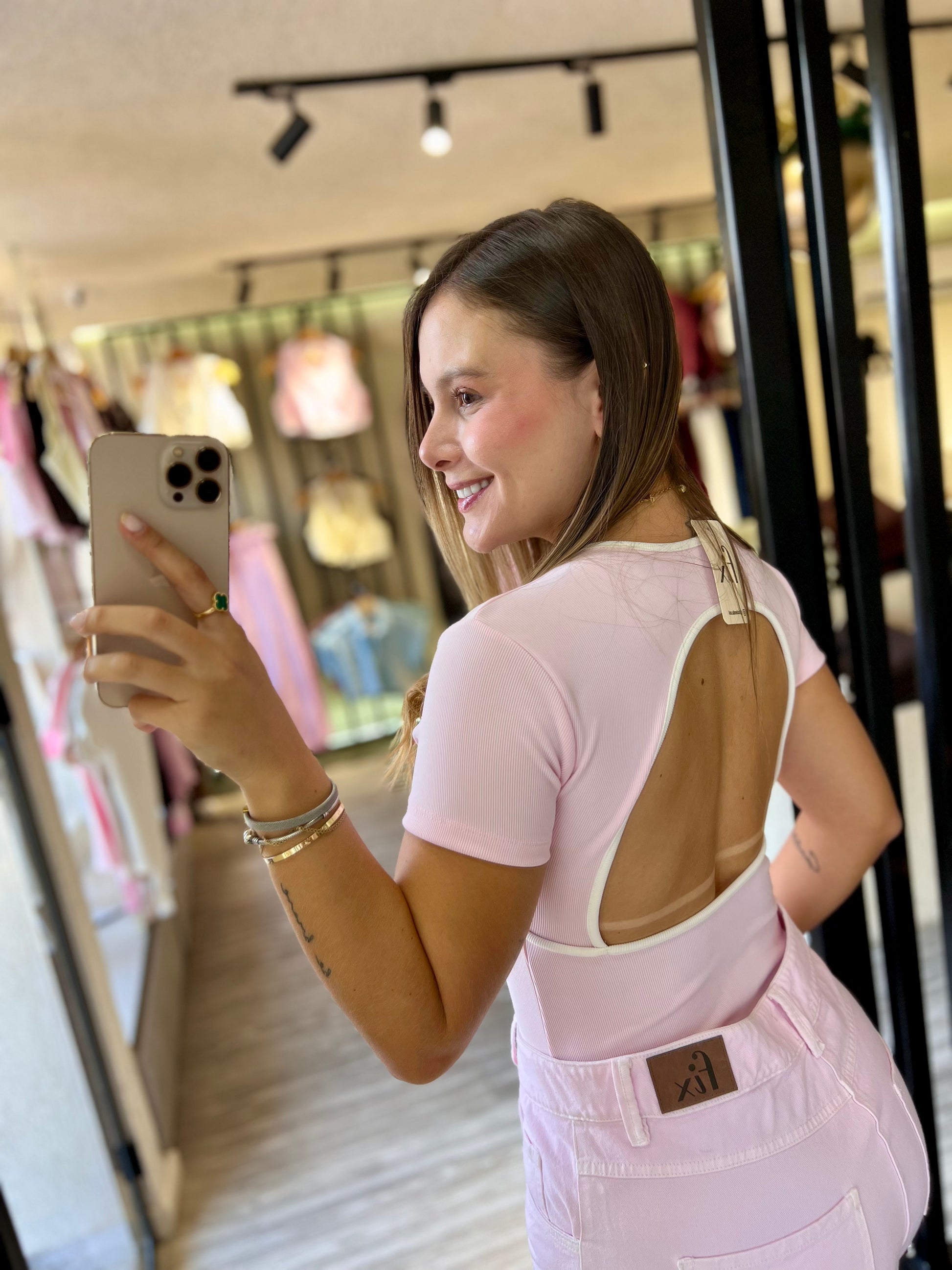 Body Manga Corta Verona Rosa-Blanco